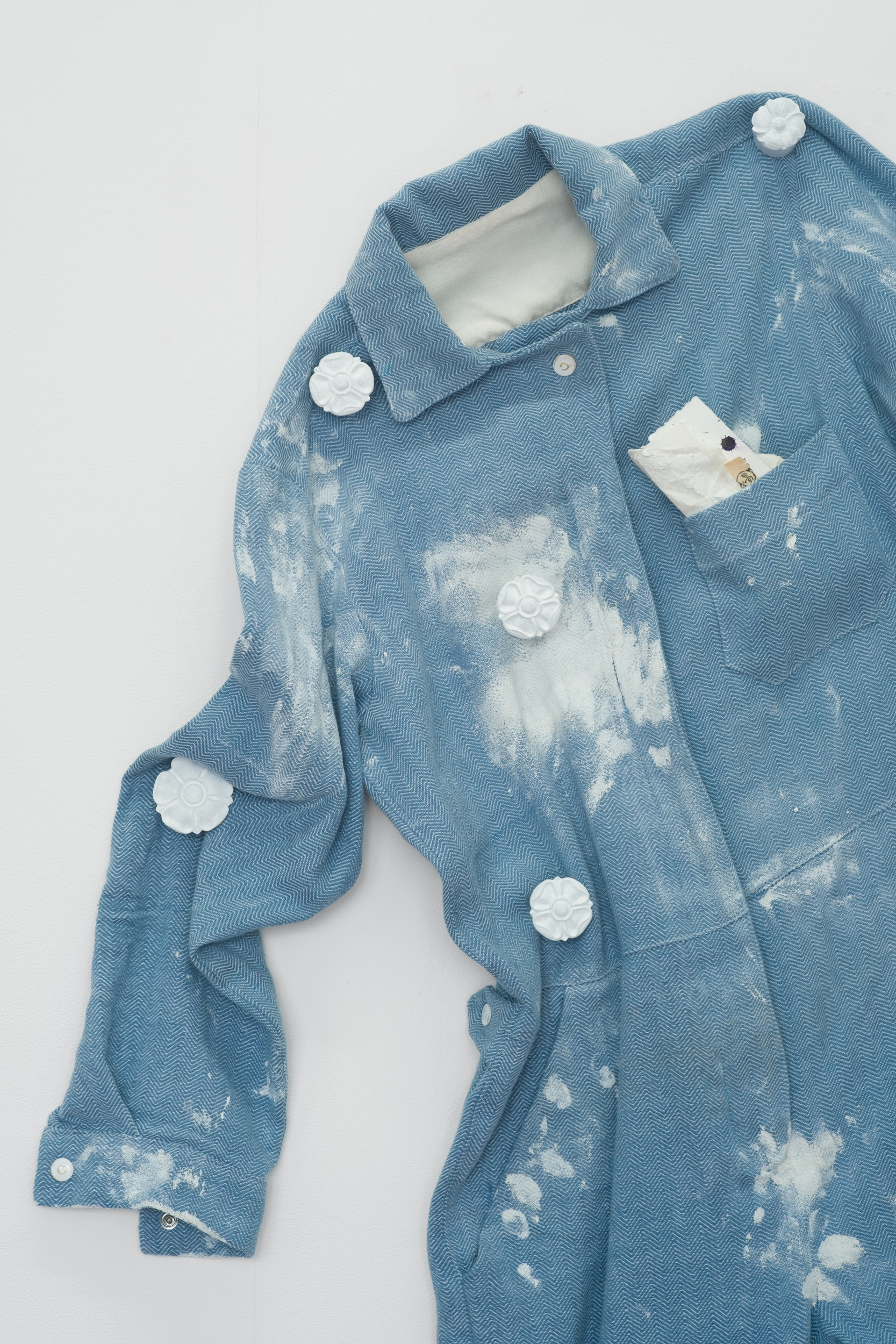 Hand woven cotton and silk, calcium carbonate, hide glue, wood, plaster, metal